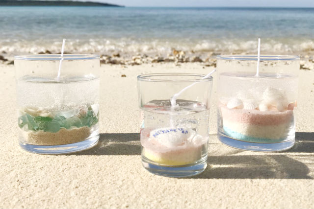 オシャレ度NO.1のジェルキャンドル!色鮮やかなカラーサンドや貝殻・サンゴを入れて、まるで宮古島の海を閉じ込めたような素敵なジェルキャンドルを作りましょう!