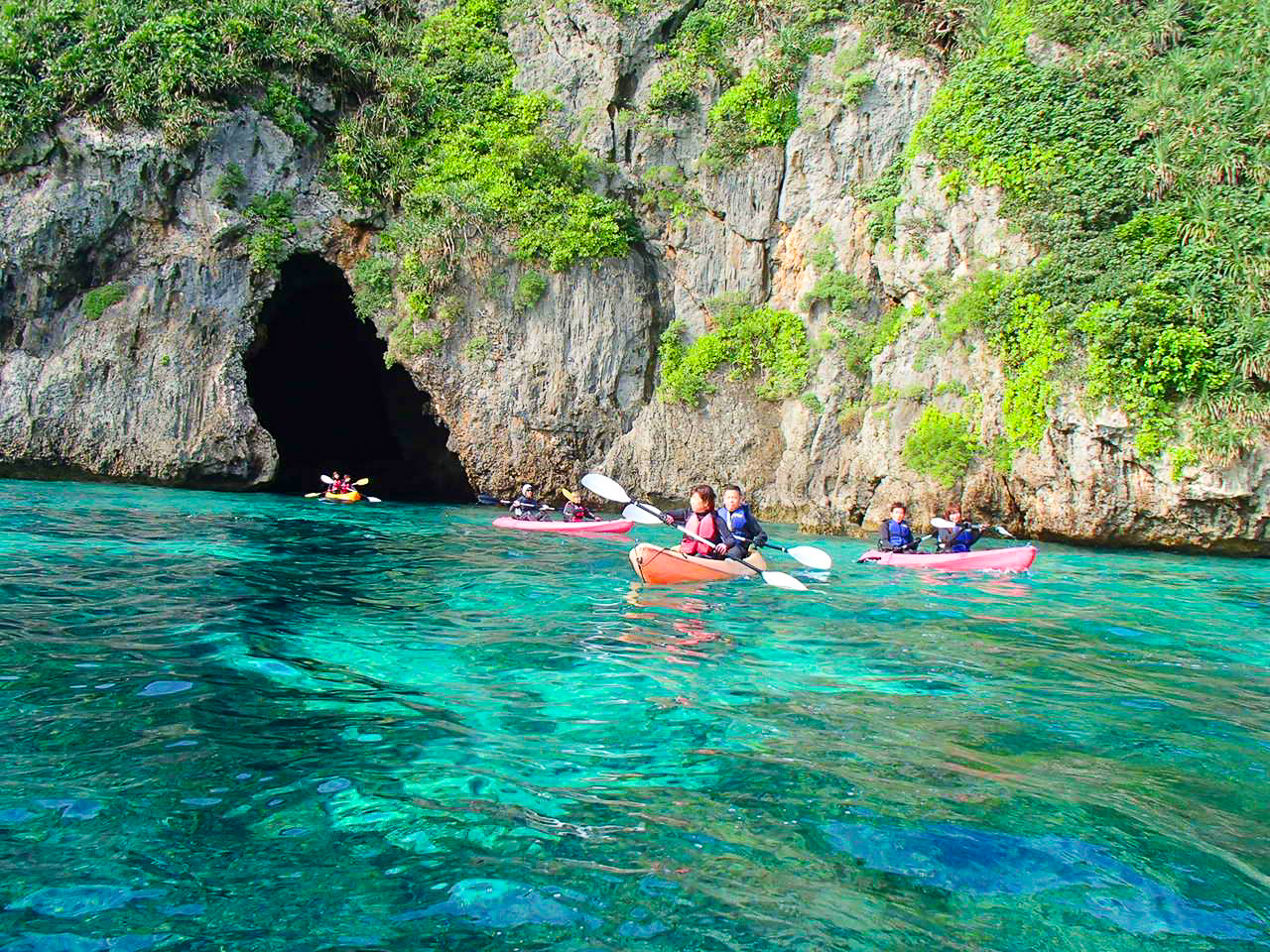 宮古島の女子旅の人気天然アクティビティ③シーカヤック&鍾乳洞探検&シュノーケルツアー-ランチ付き-