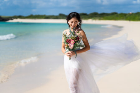 方は月齢カレンダーをご確認の上ご予約下さい。 料金に含まれるもの データ枚数:約70枚、衣装:タキシード一式、ドレス一式、小物、ブーケ、ヘアメイク 持ち物 コンタクトのお客様はコンタクトケース、タオル、ビーチサンダル、衣装に合わせたい御履物 集合・解散場所 ・集合場所:お客様ホテル・解散場所:撮影最終場所開催場所 ・宮古島:前浜ビーチ