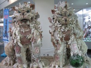 宮古空港でひと際目立つのがあたらかシーサー。貝殻とシーサーの融合という作品は想像以上に迫力があります。写真撮影スポットしても人気なので、宮古島に到着したらまずここで記念撮影をするのもいいですね。